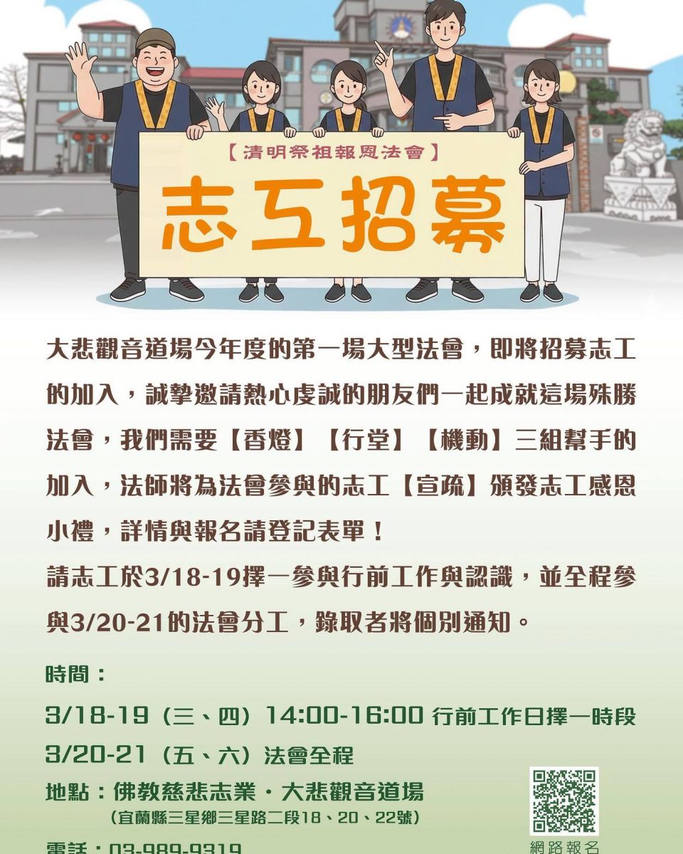 並全程參與3/20-21的法會分工,錄取者將個別通知。